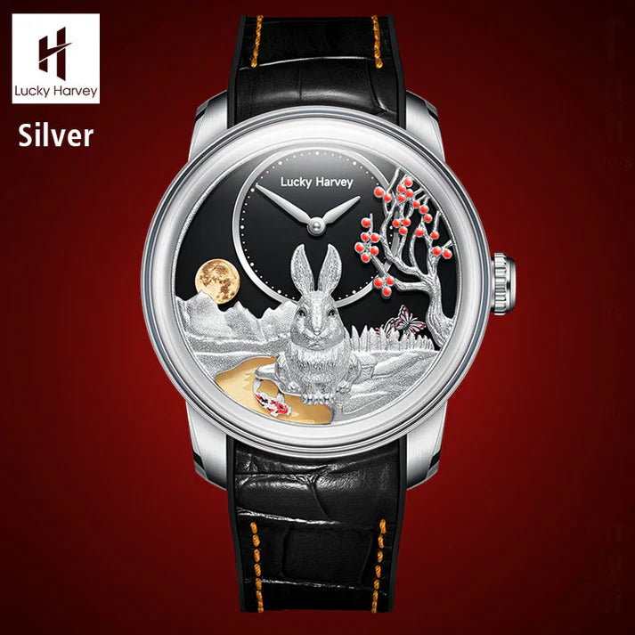 La montre Rabbit Silver de Lucky Harvey célèbre l’année du Lapin avec une élégance intemporelle. Cette édition limitée, produite à seulement 588 exemplaires, rend hommage à la symbolique du lapin en Chine, associée à la chance et à la prospérité. Son cadran finement détaillé intègre un motif de lapin argenté, tandis que son boîtier robuste en acier inoxydable et son mouvement automatique offrent fiabilité et précision. Dotée d’une fonction luminescente, elle se distingue même dans l’obscurité, offrant un éclat élégant. Cette pièce rare est un must pour les collectionneurs et les passionnés d’horlogerie raffinée.