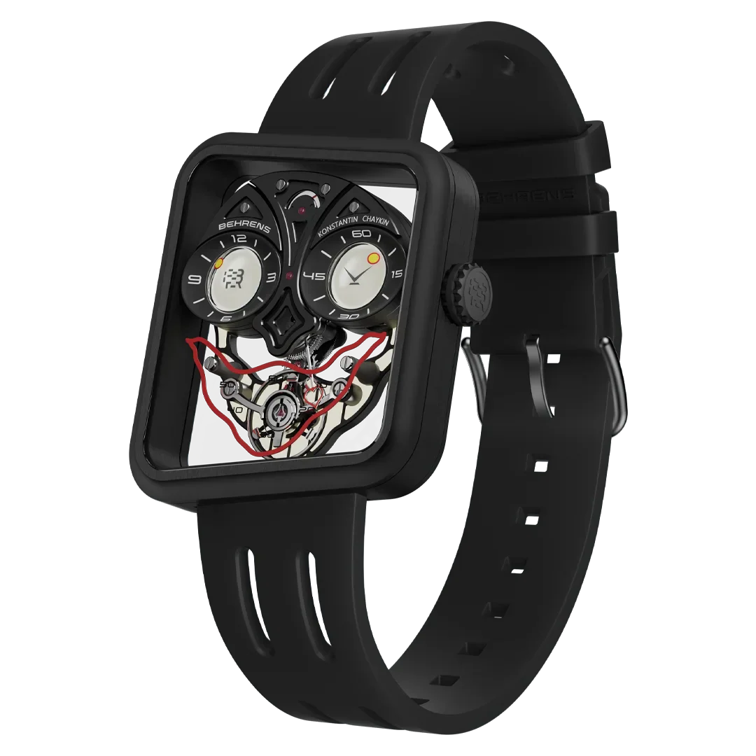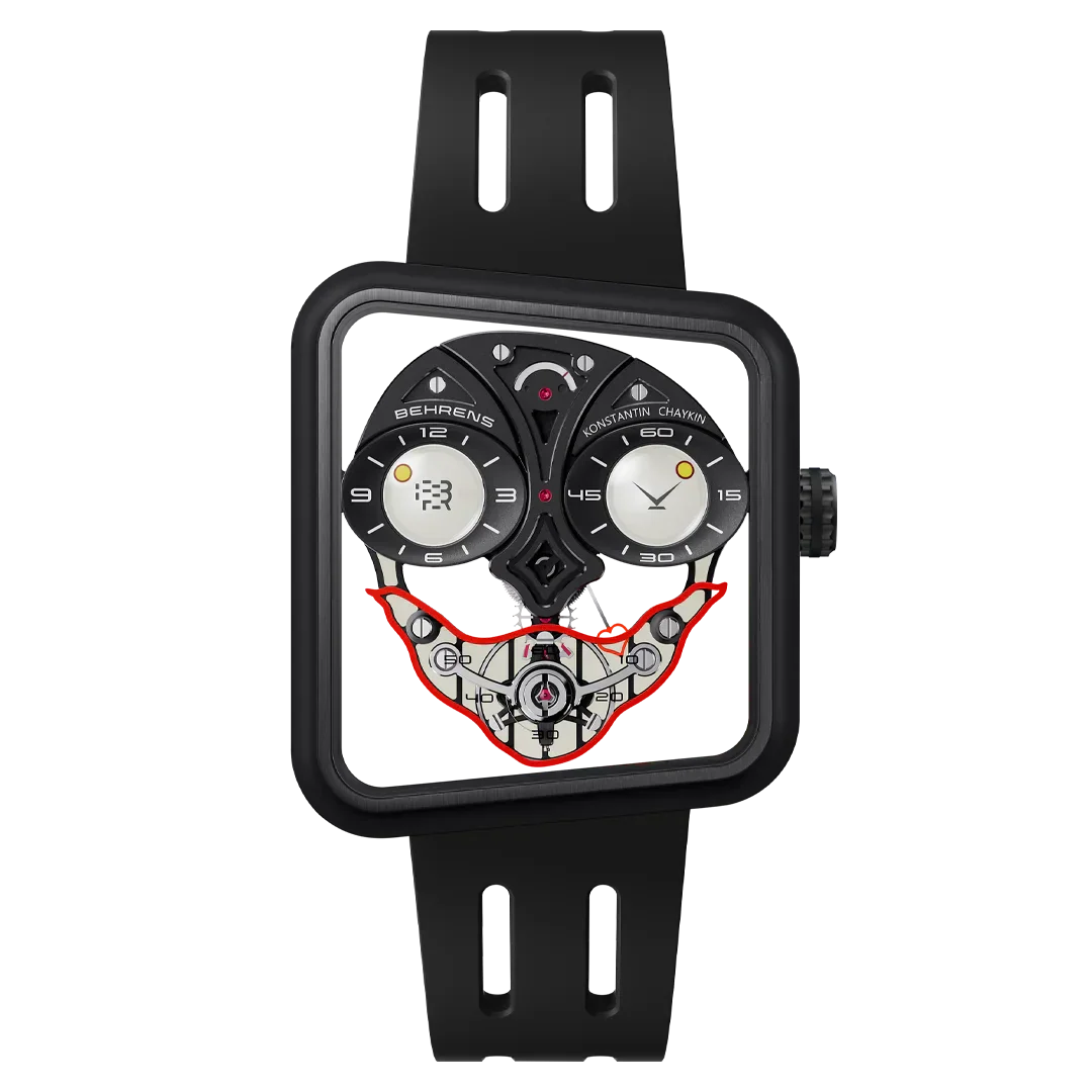 Le cadran rend hommage à l'artisanat chinois de l'ère Han, reflétant le personnage du Conteur en Poterie Battant un Tambour, tout en reprenant le personnage emblématique du Joker interprété par Konstantin Chaykin et l'asymétrie caractéristique de Behrens. Ce garde-temps, protégé par 11 brevets, est un pont entre :