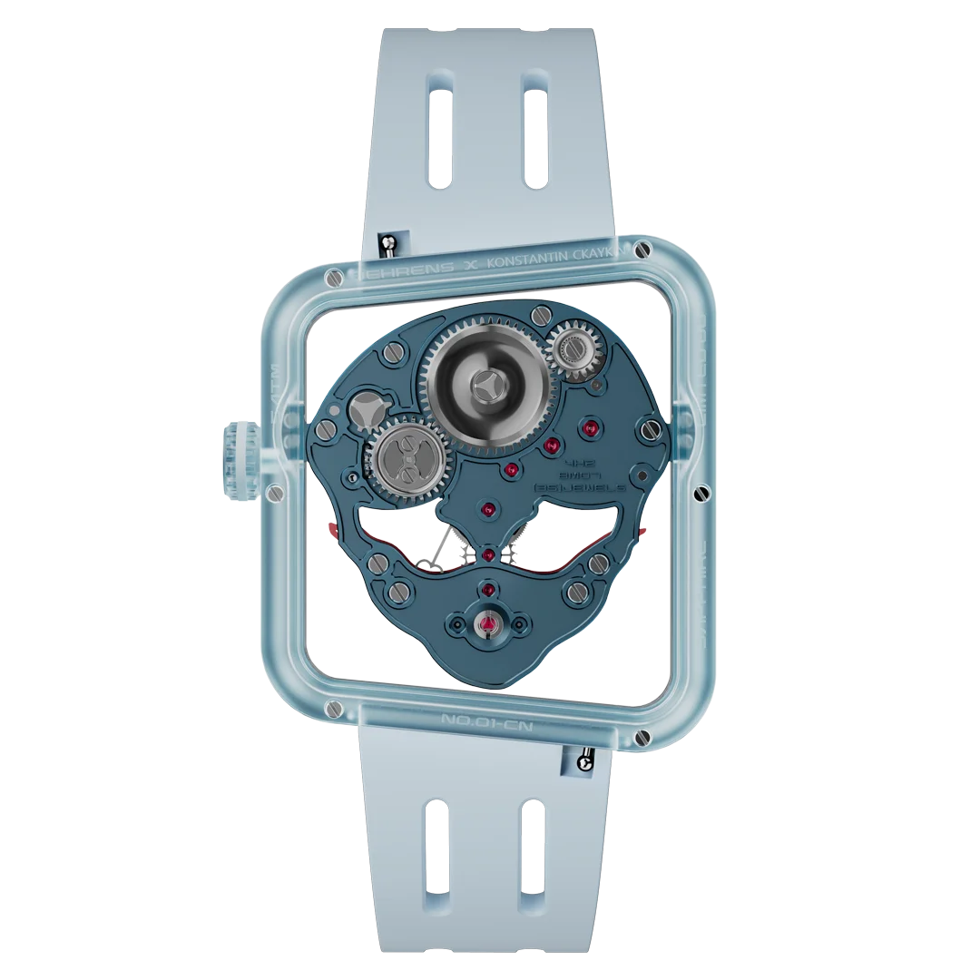 Le fond transparent du boîtier révèle ces touches mécaniques d'art, créant un dialogue visuel captivant entre le créateur et le porteur.