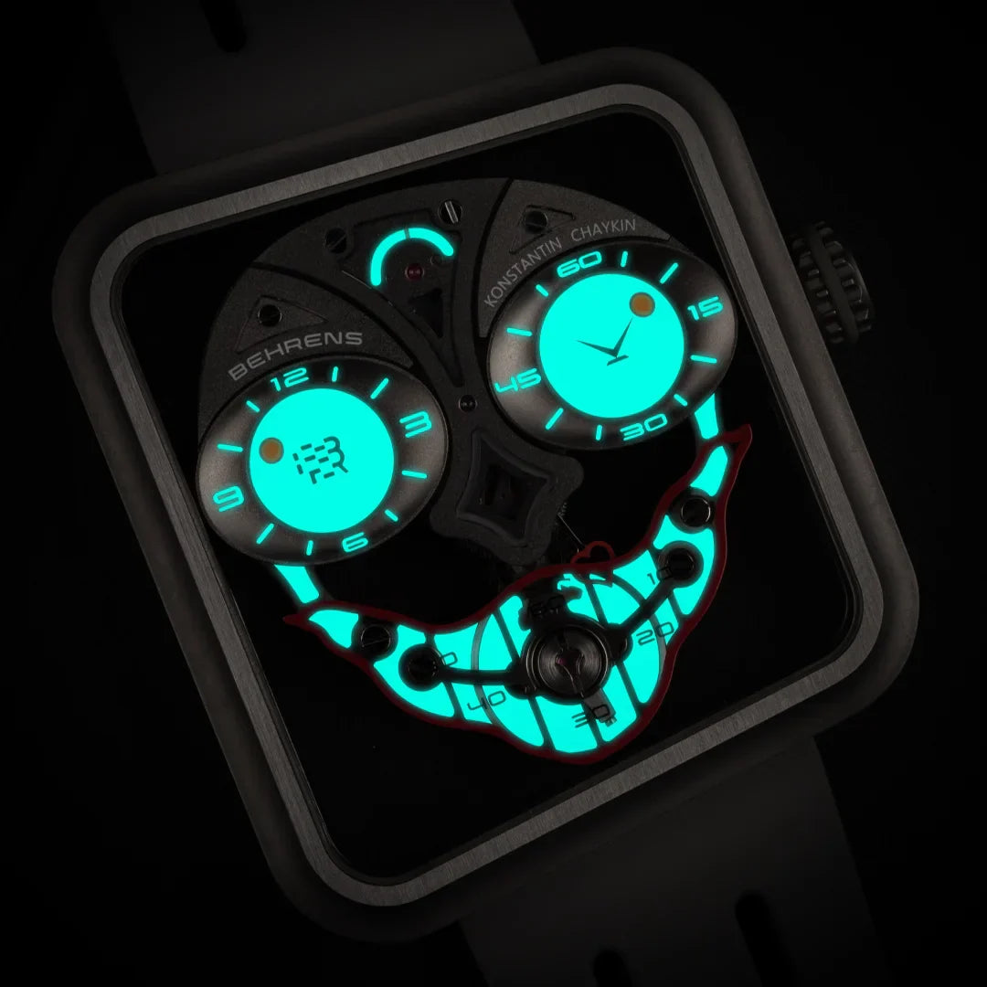 Le cadran rend hommage à l'artisanat chinois de l'ère Han, reflétant le personnage du Conteur en Poterie Battant un Tambour, tout en reprenant le personnage emblématique du Joker interprété par Konstantin Chaykin et l'asymétrie caractéristique de Behrens. Ce garde-temps, protégé par 11 brevets, est un pont entre :