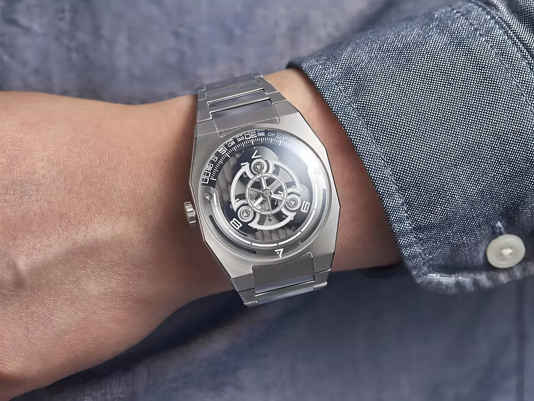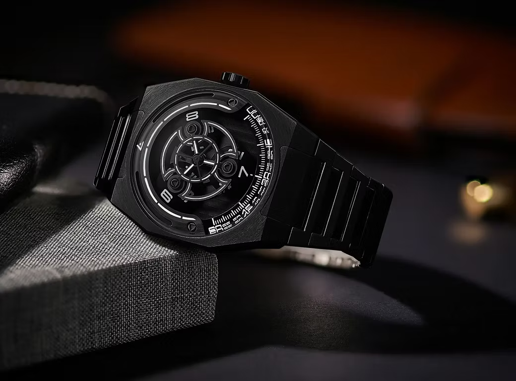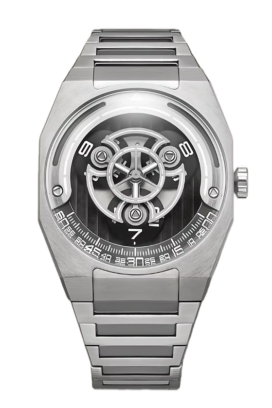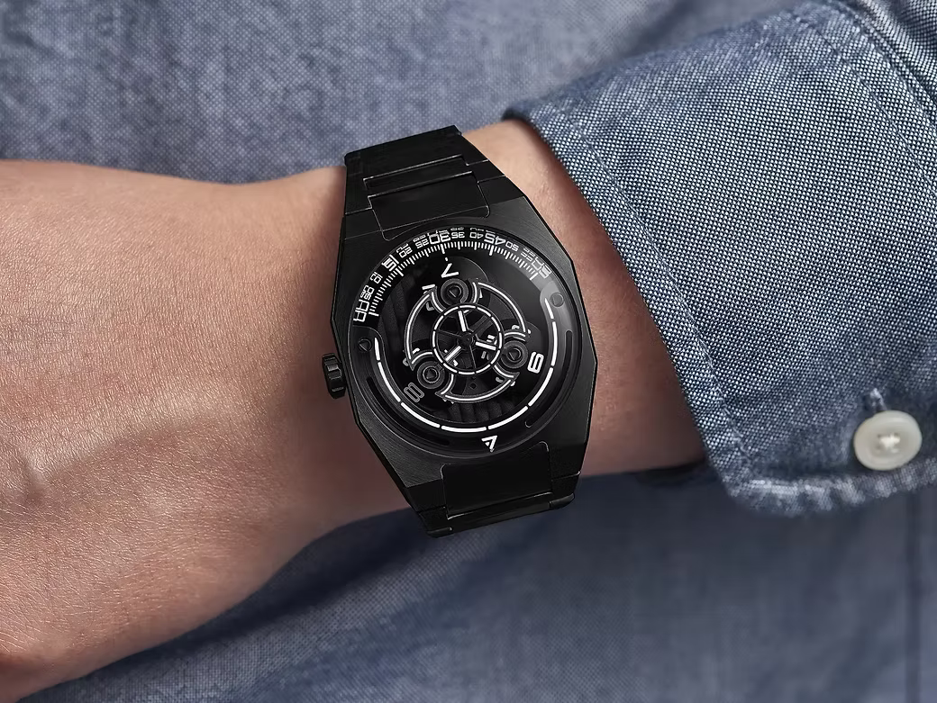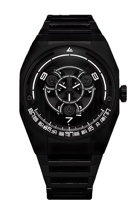 L’Angles KOI-5 est un garde-temps en édition limitée à heure vagabonde, inspiré par le système stellaire fascinant de KOI-5 dans la constellation du Cygne. Dotée de trois disques rotatifs, cette montre automatique pour homme imite le ballet céleste des trois soleils, offrant une représentation du temps qui évoque une danse cosmique.