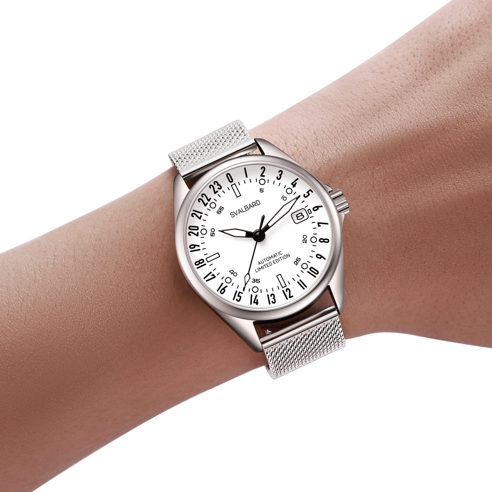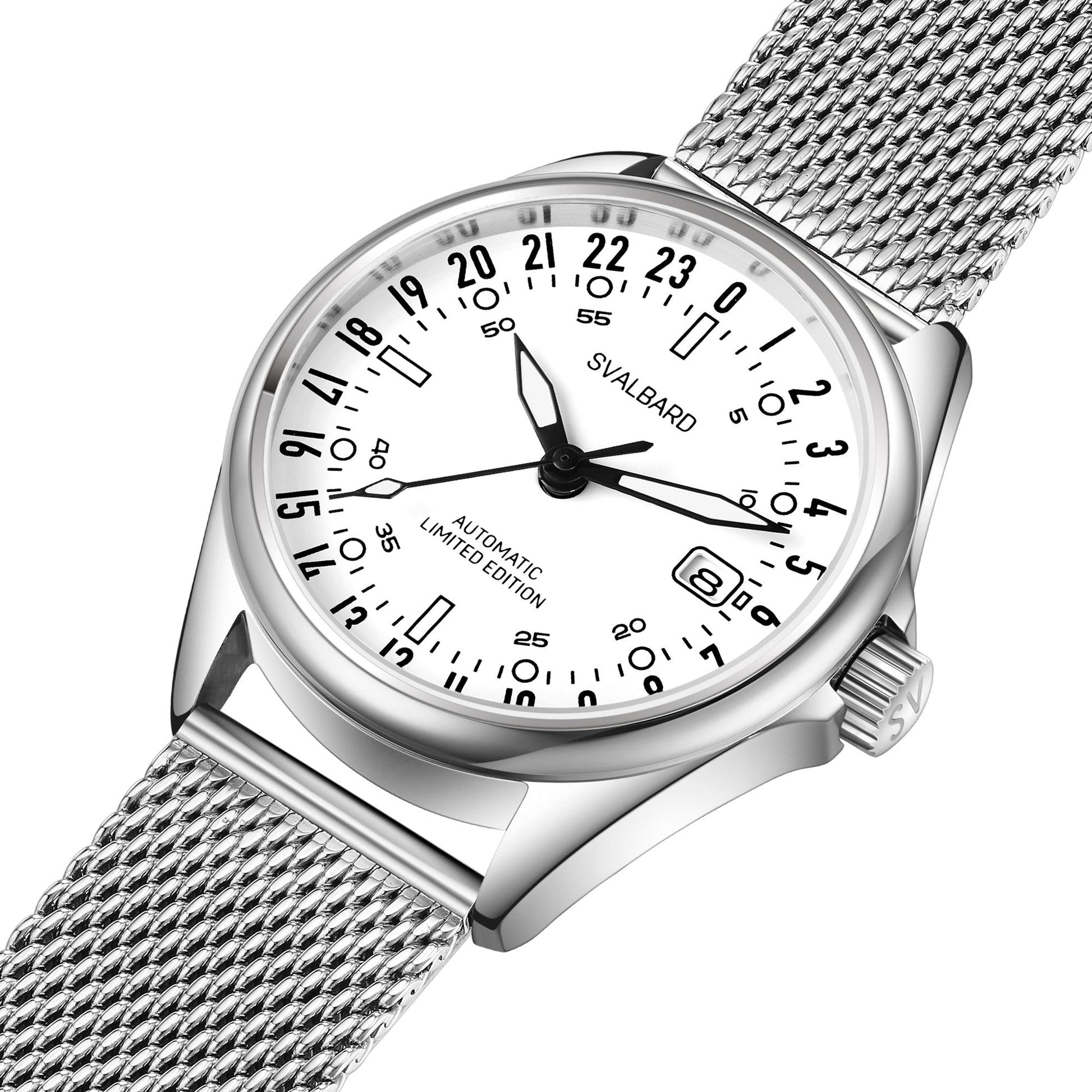 • Bracelet : Cuir noir, cuir marron ou maille acier (20 mm, barrettes à dégagement rapide)