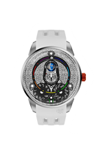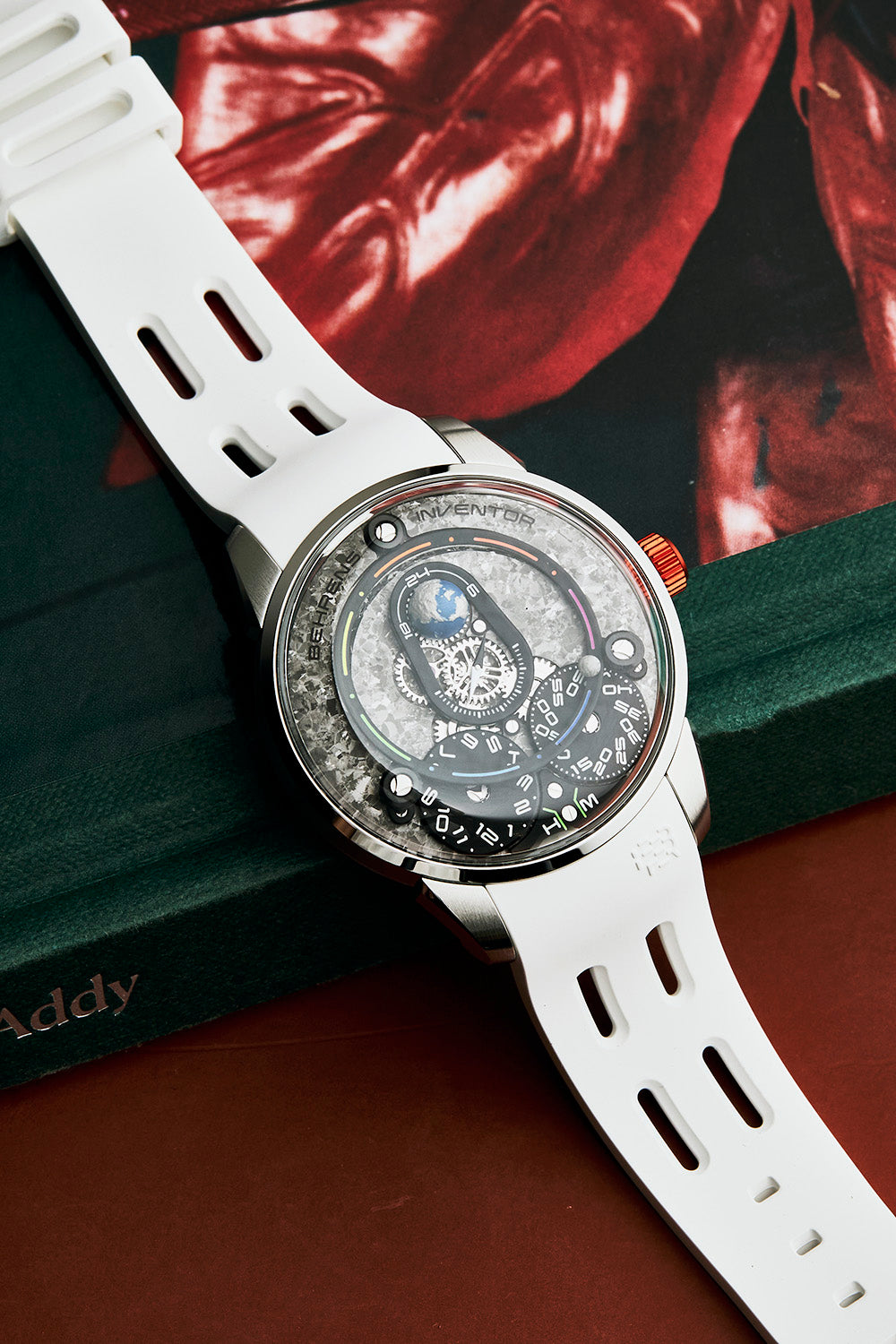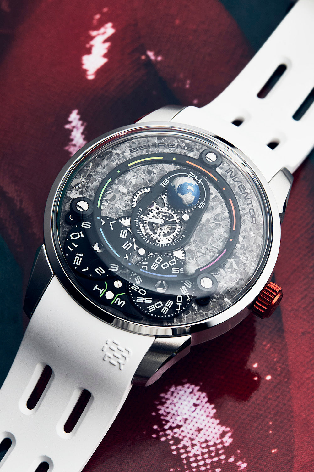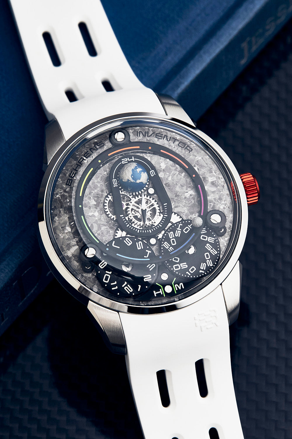Elle est équipée d’un mouvement automatique Swiss Made ETA Cal.2824, offrant une lecture de l’heure inspirée par l’orbite entre la Terre et la Lune. À 12h00, un globe représentant la Terre effectue une rotation en 24 heures pour indiquer le cycle jour/nuit, tandis que la Lune tourne autour de la Terre en un cycle de 28 jours, offrant une vision en 3D fascinante et réaliste de l’espace.