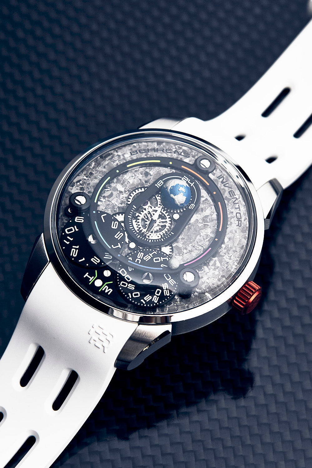 Le cadran bleu ciel, associé à des éléments métalliques décentralisés pour l'affichage des heures et des minutes, crée un effet visuel unique et immersif. Avec ses finitions haut de gamme et ses fonctions complexes, la Behrens Apolar Titane Cristallisé est bien plus qu’une montre : c’est une œuvre d’art horlogère moderne.
