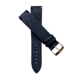 Un bracelet en cuir pleine fleur, doublé cuir, au look classique mais subtilement relevé de notre célèbre point de bride "bleu blanc rouge". Jouez la valeur sûre avec le Douarnenez qui habillera à merveille votre tool watch ou votre plongeuse préférée !