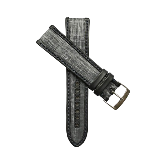 - Cuir, tissu technique avec trame carbone, doublure végétale, boucle finition argentée