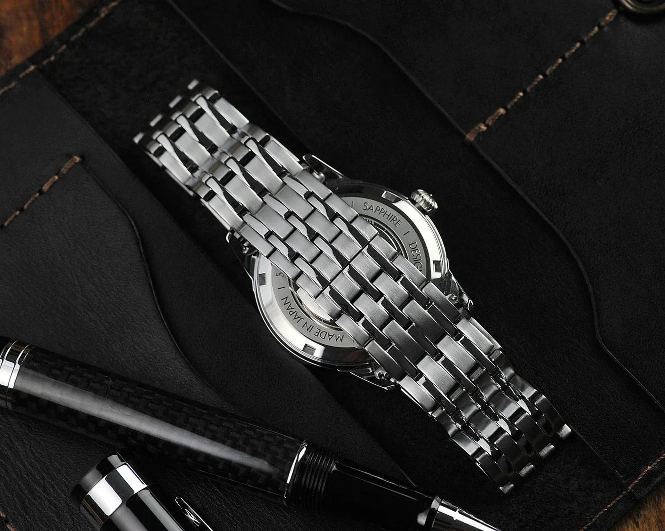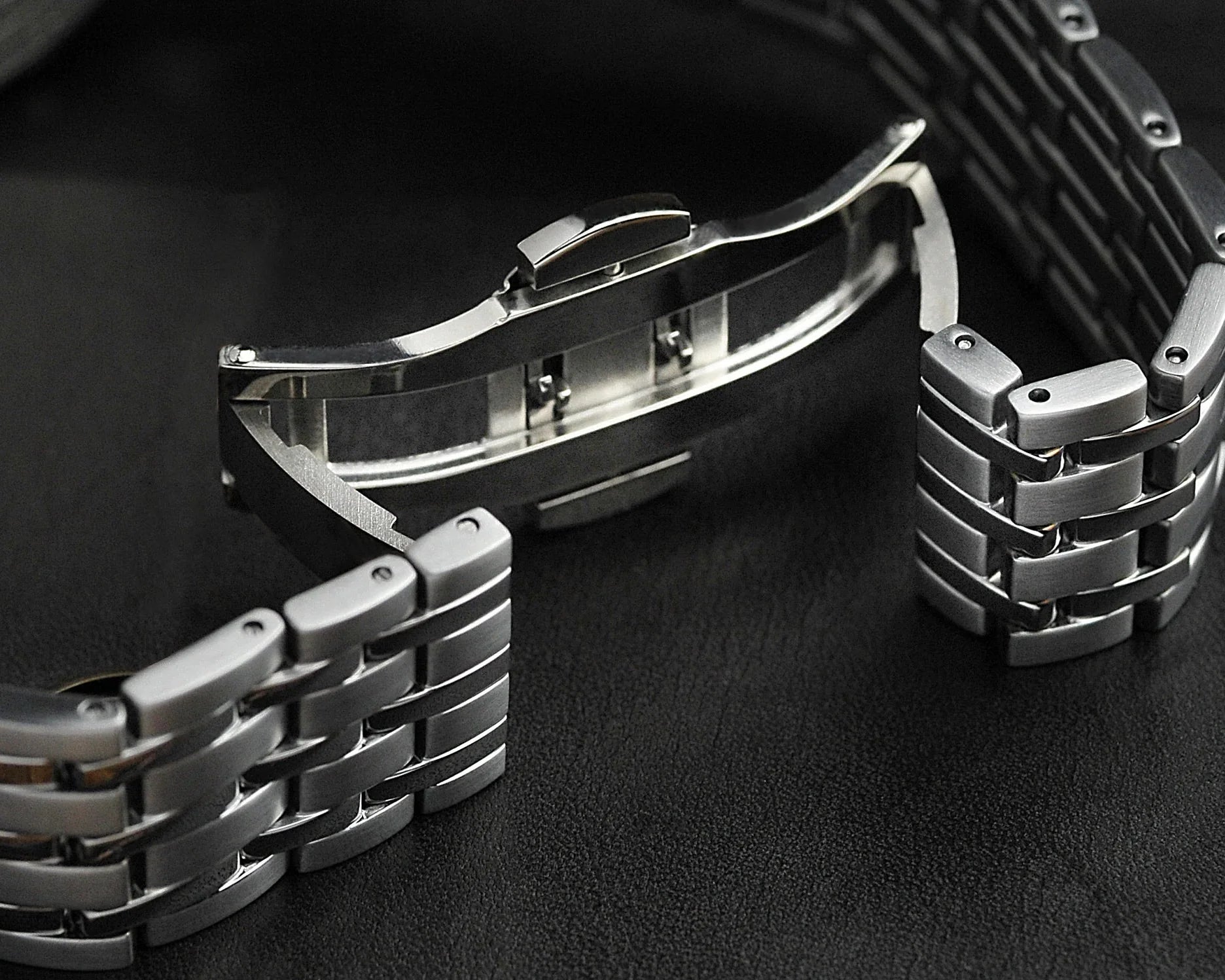 Offrez un nouveau look à votre montre Empire avec ce bracelet métallique premium signé Vario. Avec une largeur de 20 mm à la corne qui se réduit à 18 mm vers la boucle déployante, ce bracelet en acier inoxydable combine design rétro-chic et confort moderne. Il est livré avec des end-links pleins conçus pour s’ajuster parfaitement à la carrure de la montre, et des maillons demi-liens permettant un ajustement précis du poignet. Le traitement de surface anti-rayures préserve l’éclat et la durabilité du bracelet. Compatible avec tous les modèles Empire de Vario, il change l’allure de votre montre en quelques minutes.
