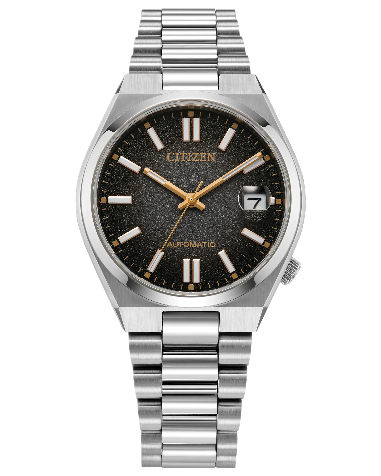 La Tsuyosa 37 mm “Time Slip” allie finesse, sportivité et style raffiné dans un format compact. Son boîtier intégré, cadran fumé noir dégradé et accents dorés lui donnent une présence assurée au poignet, tout en restant harmonieuse et équilibrée. Pensée pour ceux qui veulent une montre automatique fiable dans un format plus petit, elle propose une esthétique moderne et une mécanique éprouvée.