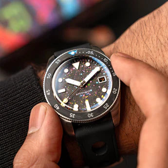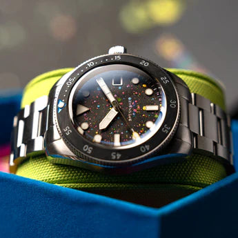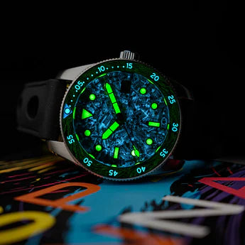 Spinnaker est fier d'annoncer sa collaboration avec l'artiste britannique renommé, Chris Alexander, également connu sous le nom de "The Dial Artist". Cette collection unique met en valeur un cadran en fibre de carbone forgée et un composé luminescent, célébrant l'océan et l'espace à travers le prisme de l'Aurore – les aurores boréales (Aurora Borealis) et le plancton bioluminescent (Aurora of the Sea).