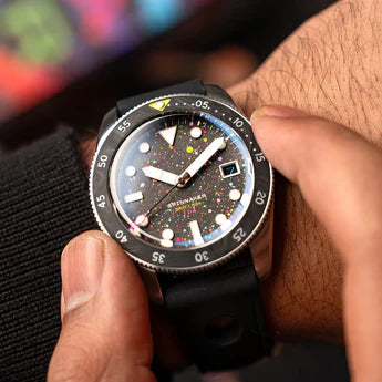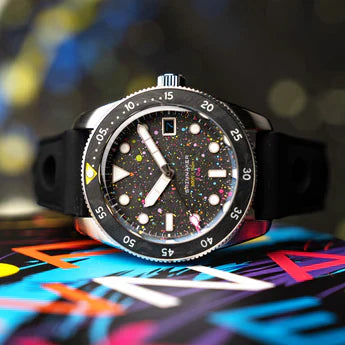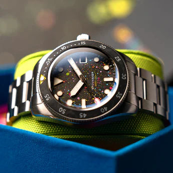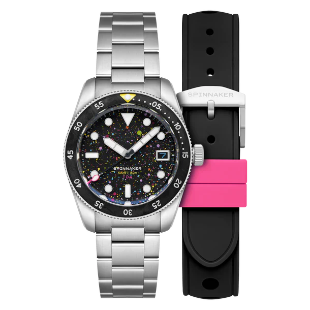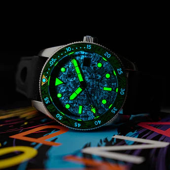 Spinnaker est ravi de dévoiler sa collaboration avec l'artiste britannique de renom, Chris Alexander, également connu sous le nom de "The Dial Artist". Cette collection exclusive se distingue par son cadran en fibre de carbone forgée et un composé luminescent, célébrant à la fois l'océan et l'espace à travers le prisme de l'Aurore — le phénomène des aurores boréales (Aurora Borealis) et le plancton bioluminescent (Aurora of the Sea).