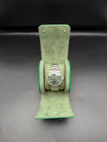 Matériaux : Cuir vert sur l’extérieur ; et intérieur en tissu vert