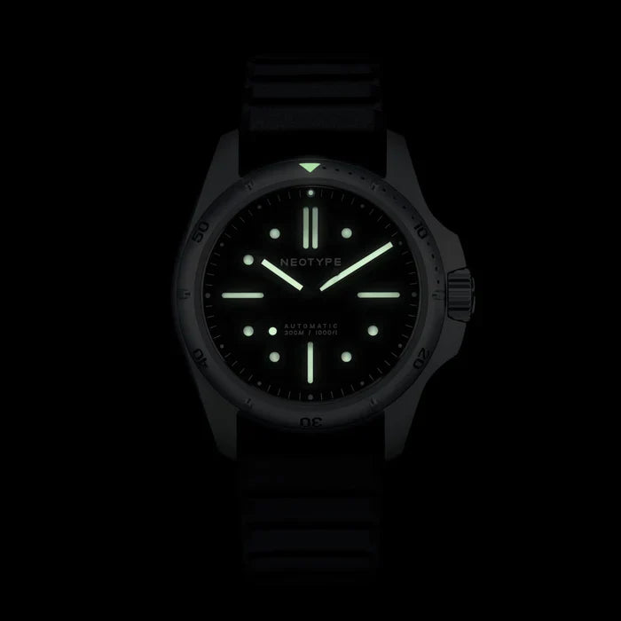 Développée pour résister à 30ATM de pression et fabriquée avec les plus hauts standards de qualité, la montre LM01 TYPE D est une montre de plongée moderne avec un design puissant et une forte présence au poignet.