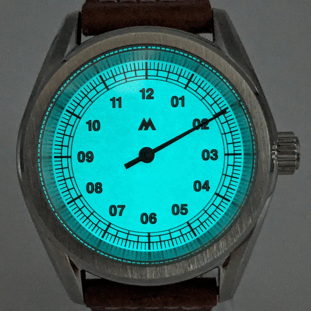 Une montre mono-aiguille ne comporte qu'une seule aiguille, généralement celle des heures, pour indiquer l'heure. Ce design minimaliste simplifie la lecture de l'heure en divisant le cadran en segments de 12 heures comme un cadran classique, avec des sous-segments supplémentaires pour les quarts, les demi-heures et les intervalles de 5 minutes. L'avantage d'une montre mono-aiguille est sa capacité à favoriser une perception plus détendue du temps. Elle encourage la pleine conscience et favorise un sentiment de tranquillité.