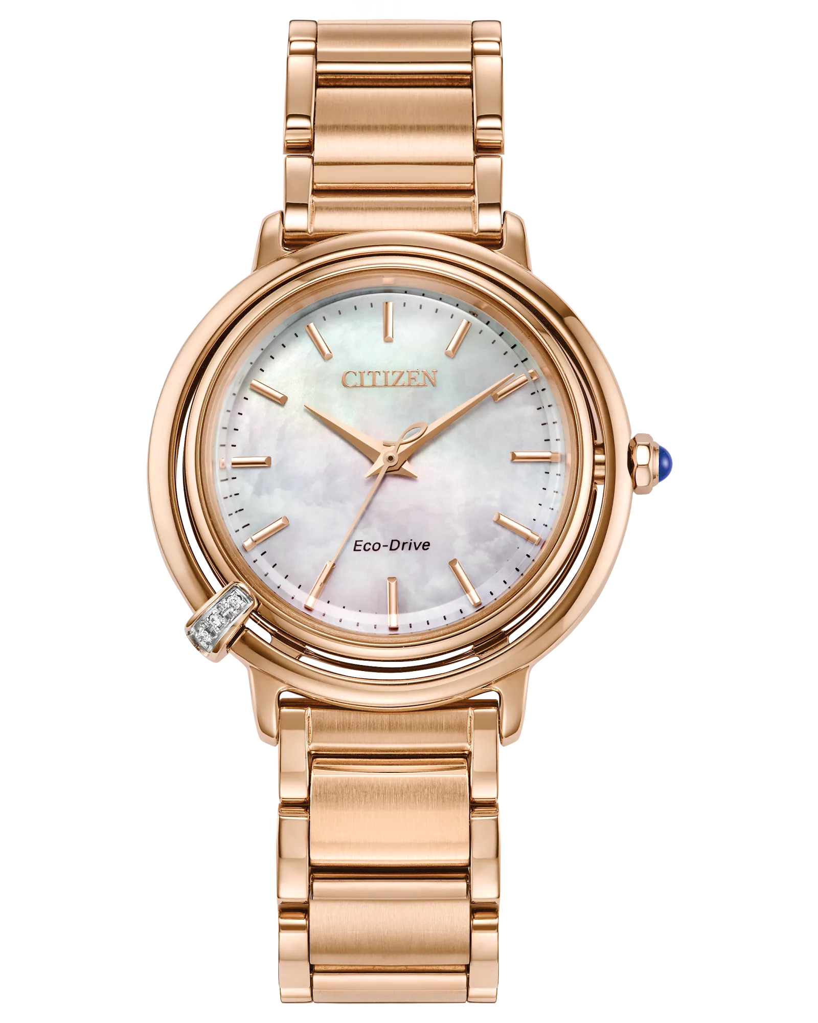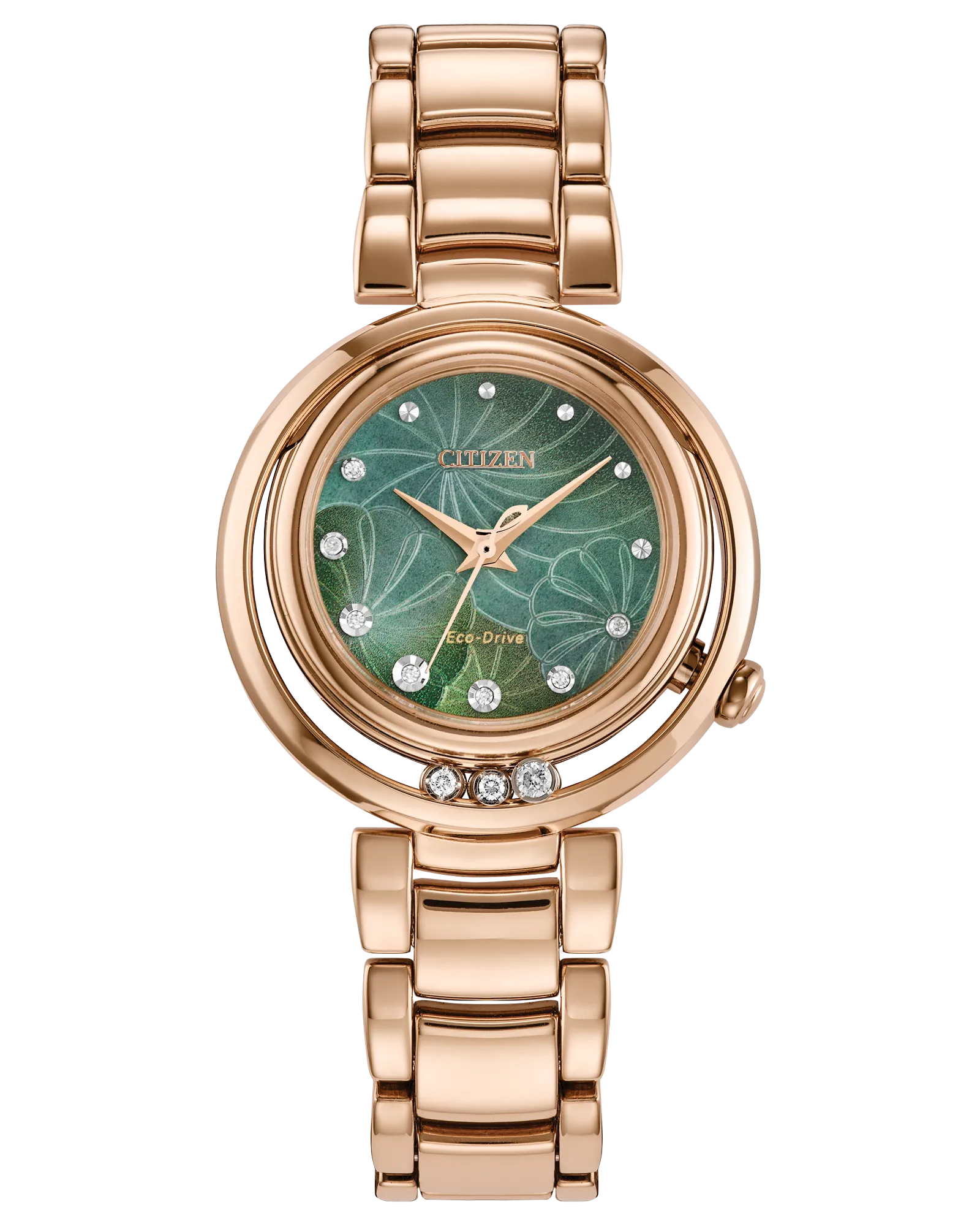 La Citizen L Arcly est une montre élégante féminine qui marie finesse, luxe et conscience écologique. Avec son boîtier circulaire de 29,8 mm, sa lunette rose gold-ton, son cadran en nacre verte et ses 3 diamants mobiles à 6h, elle captive par ses détails subtils. Alimentée par la technologie Eco-Drive, elle fonctionne à la lumière, éliminant le besoin de changer la pile. C’est une pièce qui se porte aussi bien en journée qu’en soirée.