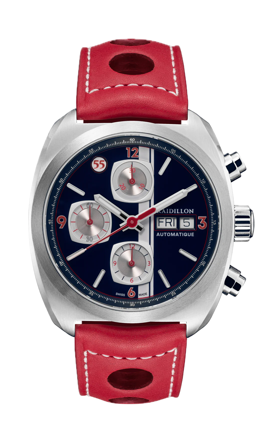 La collection Miles de Raidillon incarne l’esprit de l’élégance discrète et raffinée. Conçue pour les amateurs de montres intemporelles, cette gamme rend hommage à la passion automobile et à la précision suisse. Chaque modèle est produit en édition limitée à 55 exemplaires numérotés, garantissant exclusivité et authenticité.