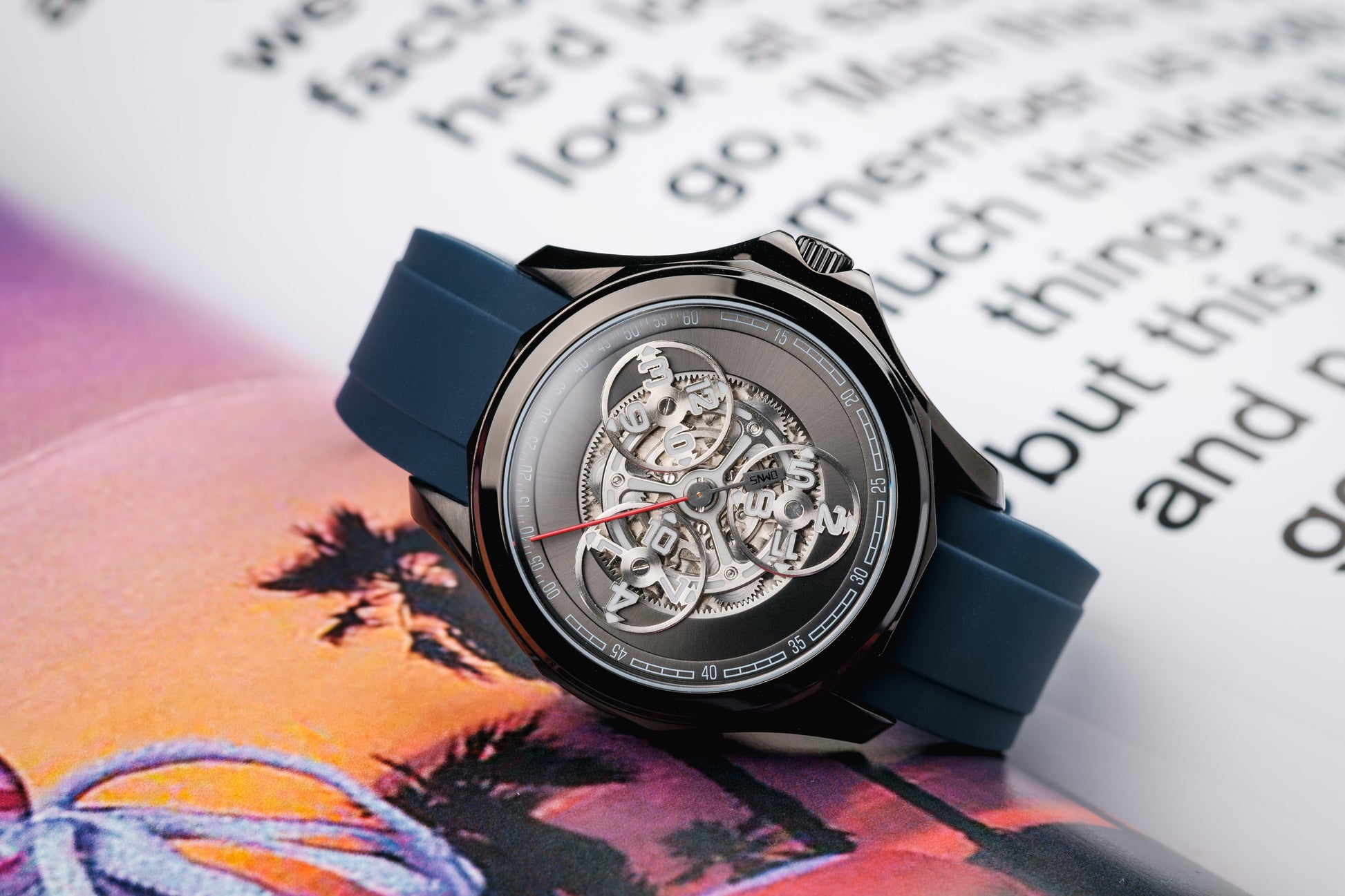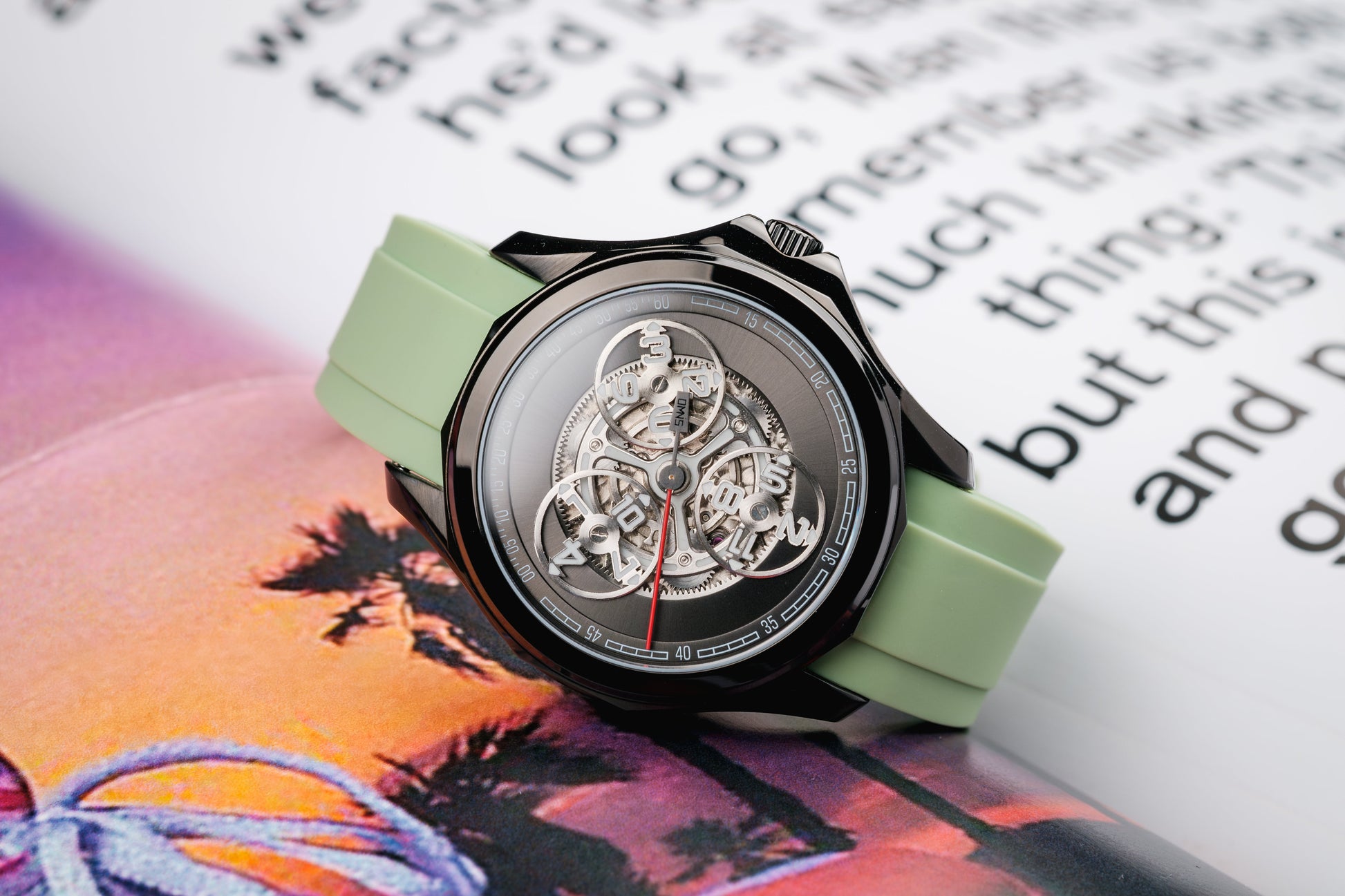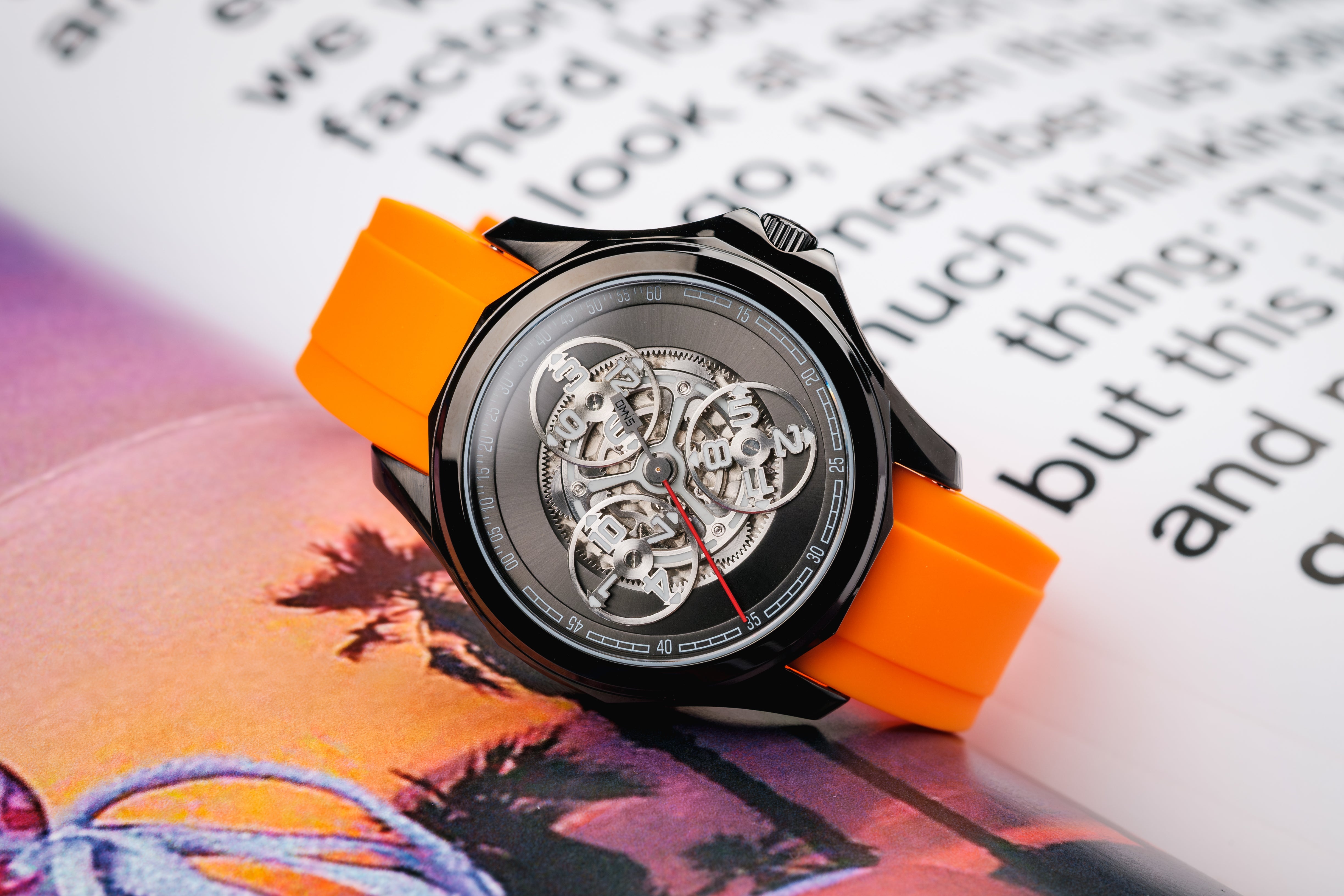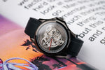 Plongez dans l'élégance intemporelle avec la montre Eon Noir, un joyau de la Collection Temporelle Omnis. Conçue pour captiver les amateurs de design avant-gardiste, la Eon Noir représente l'alliance parfaite entre innovation moderne et héritage horloger. Son cadran audacieux et obscur, traité avec un revêtement PVD noir, révèle une mécanique complexe et envoûtante, battant au rythme de ce chef-d'œuvre fonctionnel.