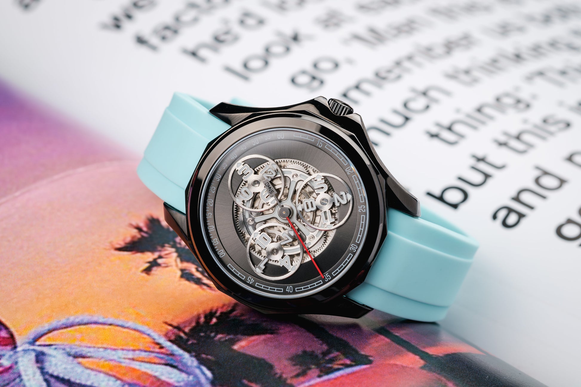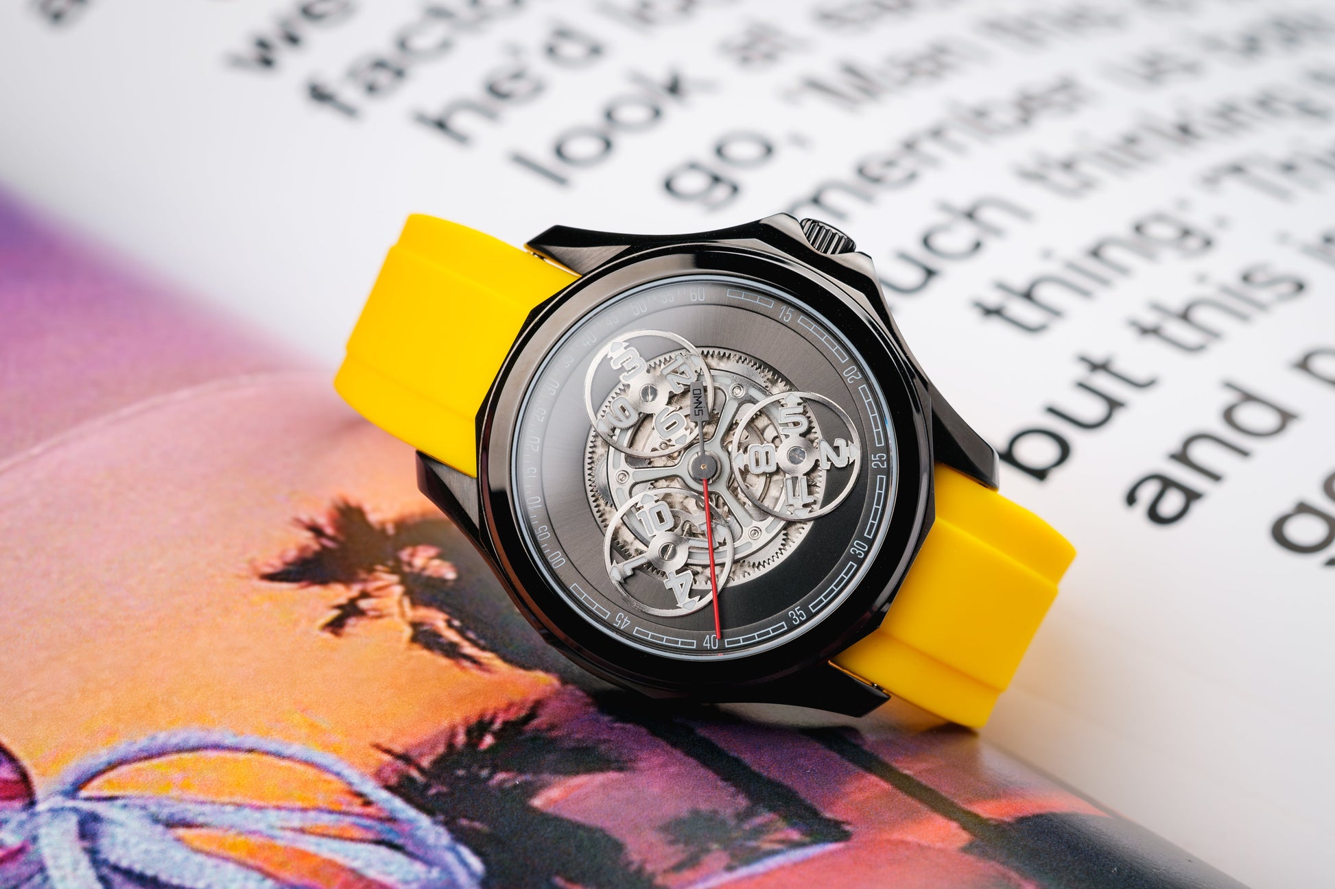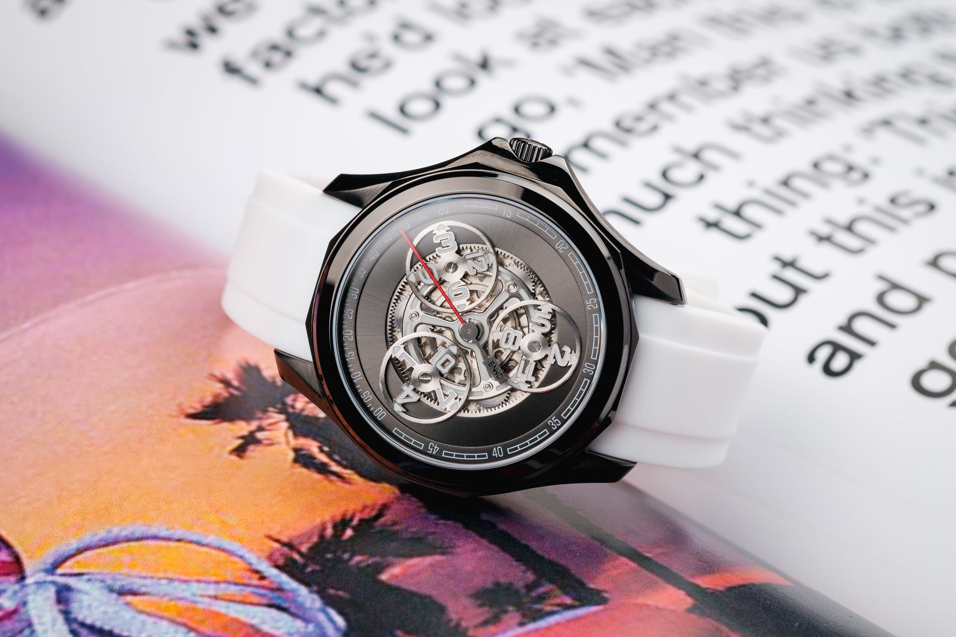 Plongez dans l'élégance intemporelle avec la montre Eon Noir, un joyau de la Collection Temporelle Omnis. Conçue pour captiver les amateurs de design avant-gardiste, la Eon Noir représente l'alliance parfaite entre innovation moderne et héritage horloger. Son cadran audacieux et obscur, traité avec un revêtement PVD noir, révèle une mécanique complexe et envoûtante, battant au rythme de ce chef-d'œuvre fonctionnel.