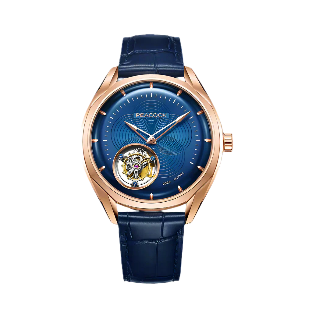 La Peacock Hand-Made Guilloché Classic-Grandeur Tourbillon incarne l’excellence de la manufacture Peacock, pionnière de l’horlogerie chinoise depuis 1957. Cette montre d’exception marie la tradition artisanale du guilloché fait main avec la sophistication technique d’un tourbillon manufacture.