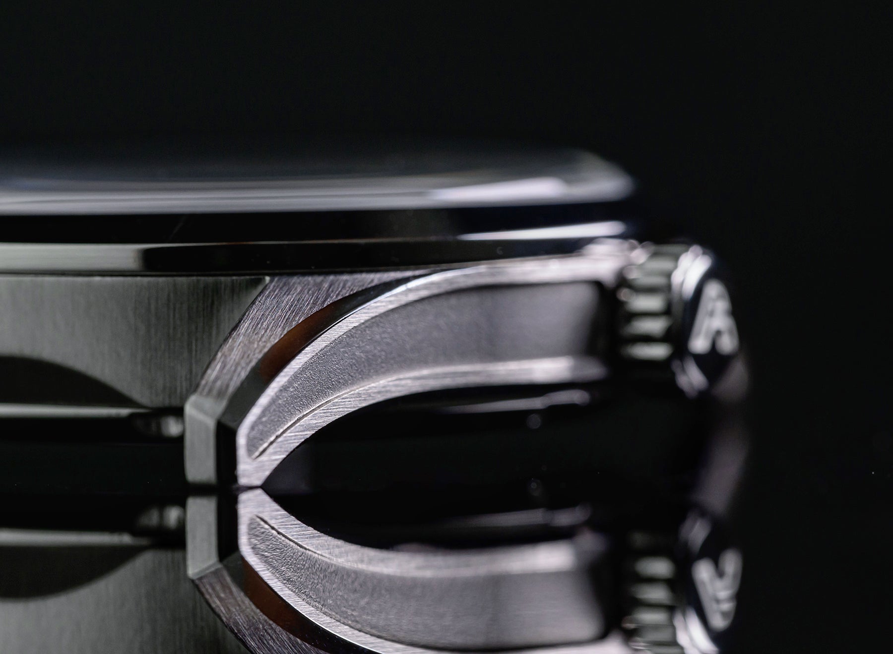 Un chanfrein conique poli le long de l' épaulement de la corne ajoute une touche de sophistication à cette montre.