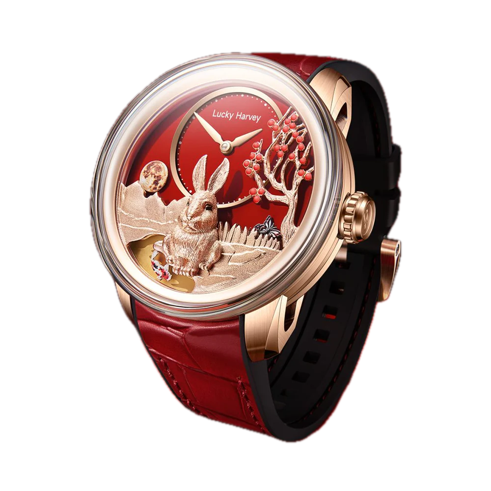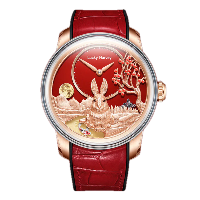 La montre Rabbit Red de Lucky Harvey célèbre l’année du Lapin avec une élégance intemporelle. Cette édition limitée, produite à seulement 388 exemplaires, rend hommage à la symbolique du lapin en Chine, associée à la chance et à la prospérité. Son cadran finement détaillé intègre un motif de lapin argenté, tandis que son boîtier robuste en acier inoxydable et son mouvement automatique offrent fiabilité et précision. Dotée d’une fonction luminescente, elle se distingue même dans l’obscurité, offrant un éclat élégant. Cette pièce rare est un must pour les collectionneurs et les passionnés d’horlogerie raffinée.